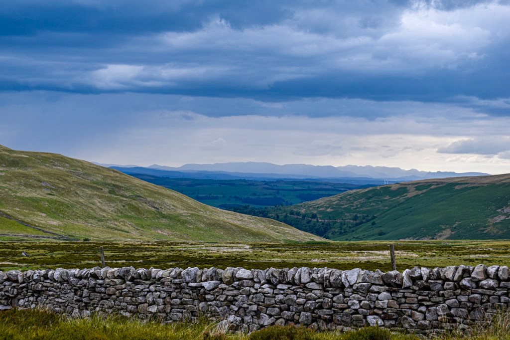 Thunder roaring with lightning gyrating in all directions, giving a charcoal wash to our view of the Dales, while bathing the Lake District in a curious, and almost sepia, hue.