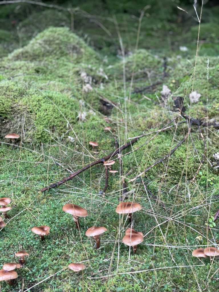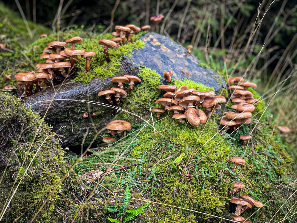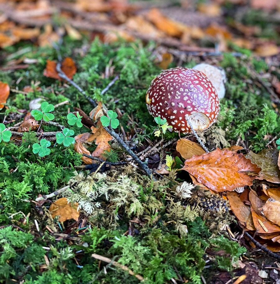 Catching the fairy toadstools slightly too late in the autumn to be at the best, but still delivering vivid smatterings across the forest floor. Wonderland vibes.