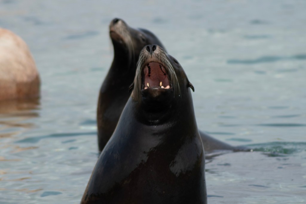 Sea lions also have rather unusual teeth. The uppers are a sort of blackish brown. This is usual, apparently, due to some kind of bacterial balance that serves the sea lion.